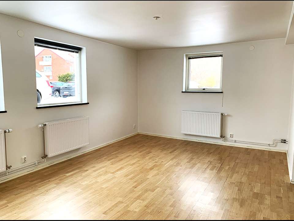 En rymlig lägenhet med två sovrum, vardagsrum, kök och ett badrum.