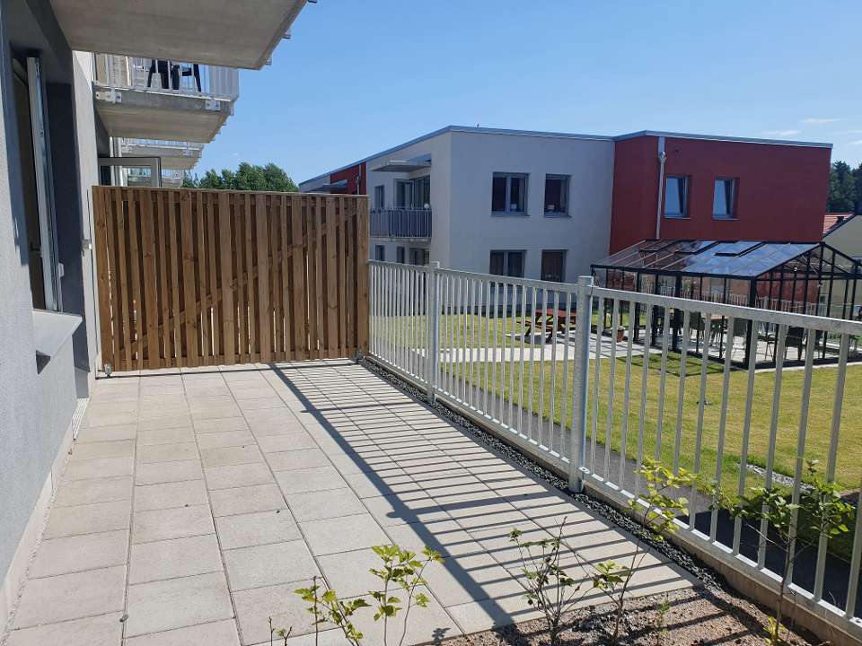 En praktisk och trevlig lägenhet med uteplats, ett rum med kök och badrum.
