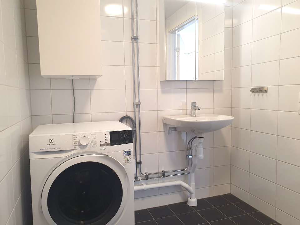 Lägenheten har hög standard med rymligt badrum med dusch, klinker och kakel, kombimaskin och ett modernt kök med vita luckor. Väggarna är målade i klassiskt vitt och golven är genomgående i ekparkett. Här kommer du bo i en välplanerad lägenhet i bra läge och med uteplats.