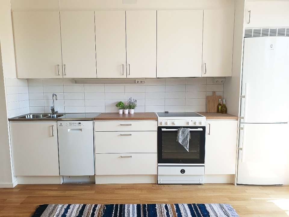 Lägenheten har hög standard med rymligt badrum med dusch, klinker och kakel, kombimaskin och ett modernt kök med vita luckor. Väggarna är målade i klassiskt vitt och golven är genomgående i ekparkett. Här kommer du bo i en välplanerad lägenhet i bra läge och med uteplats.