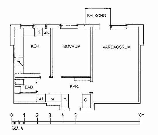 En rymlig lägenhet med balkong,sovrum, vardagsrum, kök och ett badrum