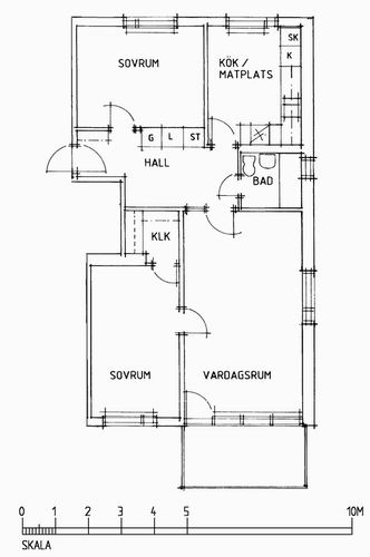 En lägenhet med två sovrum, vardagsrum, kök,badrum och balkong.